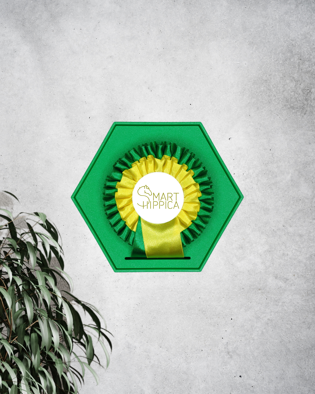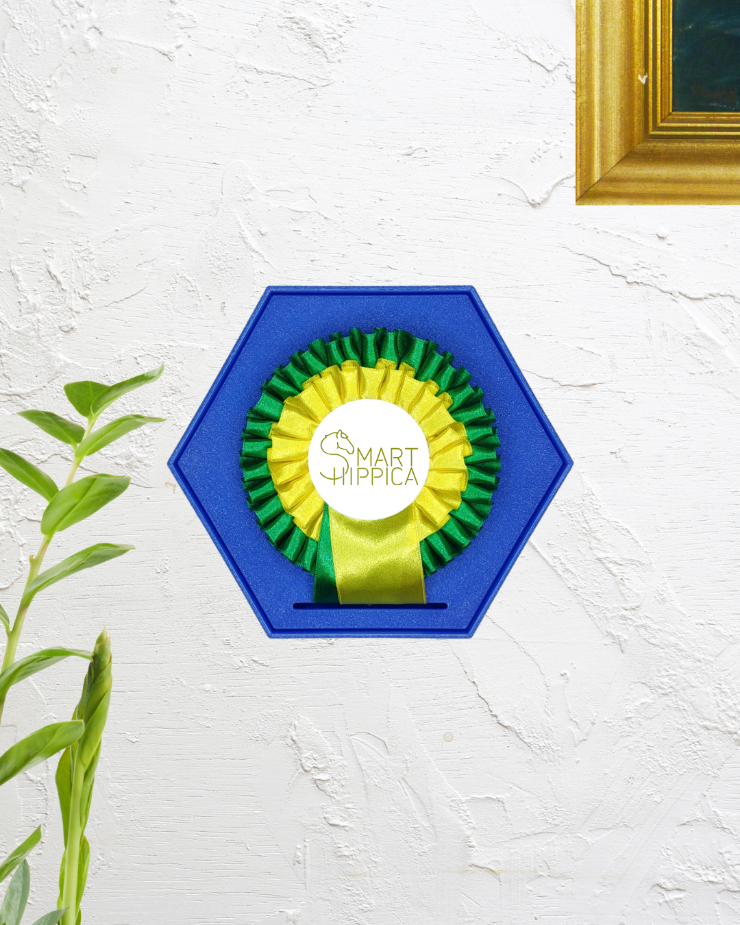 To nowoczesna ramka ścienna w kształcie sześciokąta foremnego, zaprojektowana specjalnie do estetycznej ekspozycji rozet jeździeckich. Dzięki niej Twoje flo mogą stać się piękną dekoracją i jednocześnie przypomnieniem najważniejszych chwil spędzonych w siodle.